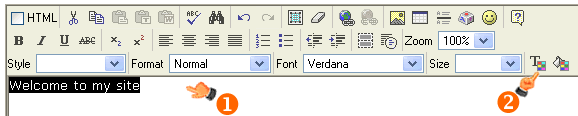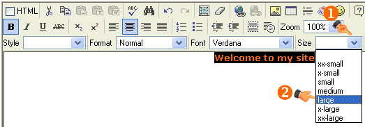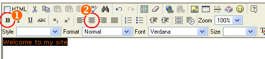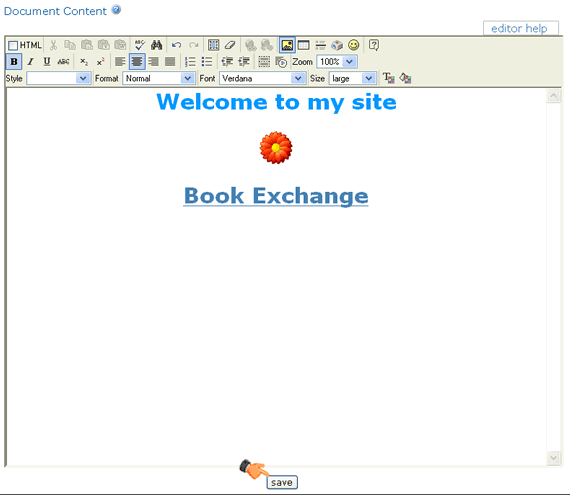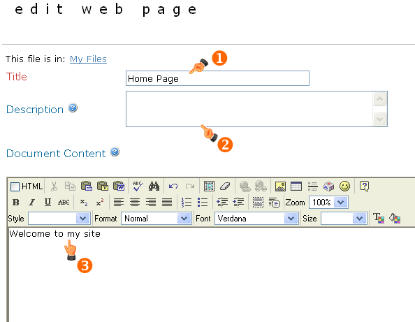 3. Enter "Welcome to my site" in the document content area.